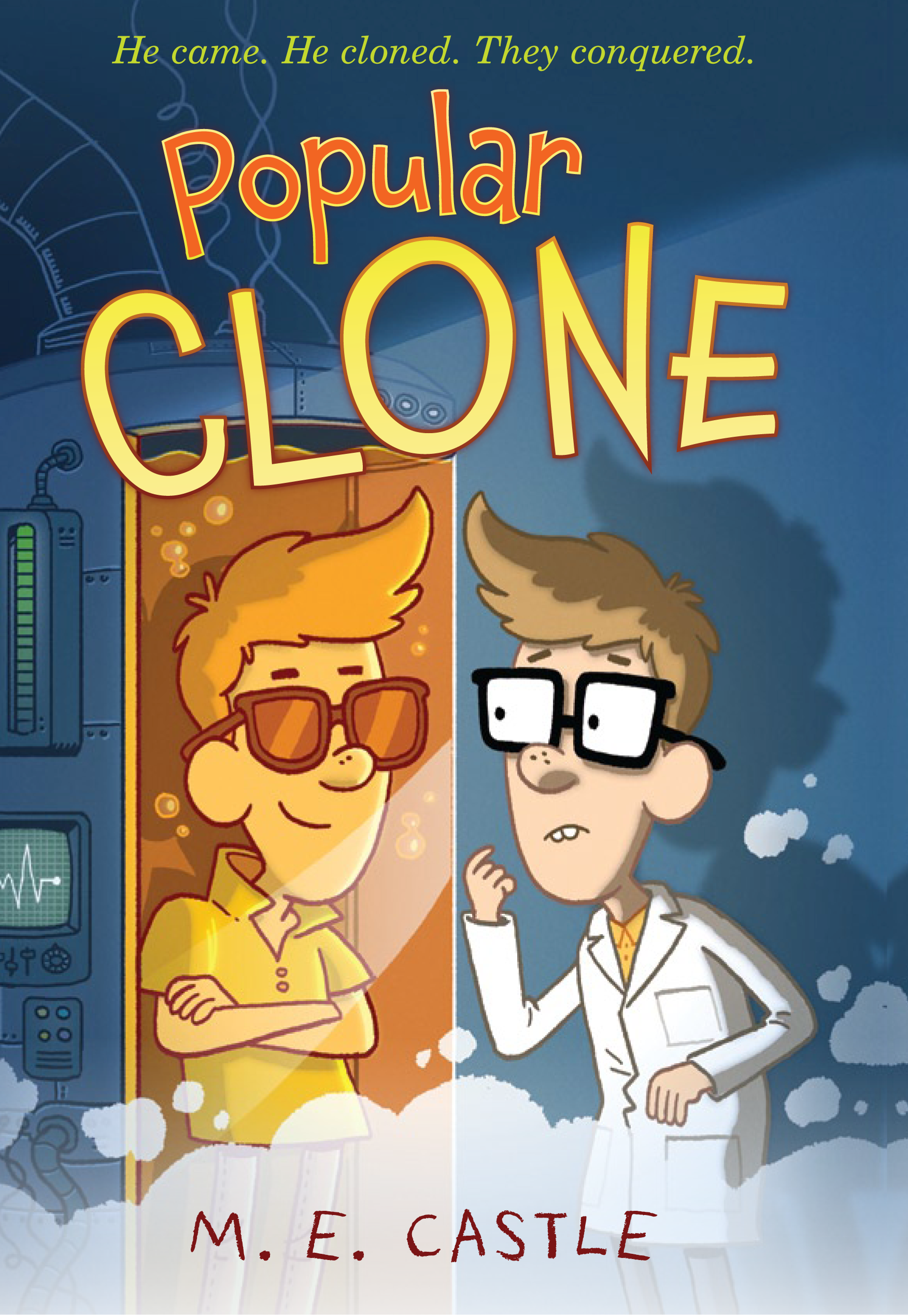 Here’s my review for Popular Clone! Hope you like it. Remember to check out the awesome fanart at the bottom! Fisher Bas is a 6th grader who gets tormented by a group of three kids that he calls the Vikings. They are always waiting for him, to bash him on the head with the biggest book they can find, give him a swirly or something else along those lines. One day, Fisher just gets tired of it. So he comes up with a solution-cloning himself with the AGH (Advanced Growth Hormones) that his mom invented, which is something that world-known Dr. X(ander, no, I am not kidding! his name is Xander!) wants to get his hands on. After a sleepless weekend, lots of work and many different attempts, Fisher creates his clone. When his clone comes to life, he thinks a woman from a Spot-Rite ad is his mother so Fisher creates a fantasy for his clone to believe-that they are trying to get their mother back and they have to go to a place to train (AKA Middle School) for their enemies. Then, after a few days, Two (Fisher’s clone’s name) becomes more popular than him! He has friends, is known around school and stands up to the Vikings. Can Fisher change Two’s ways before something bad happens and they realize Two is not Fisher? In a wacky middle-grade story of adventure and clones, Fisher strives to be as good as his clone, and fights the evil Dr. X after a very shocking twist in the plot in a wonderful debut.